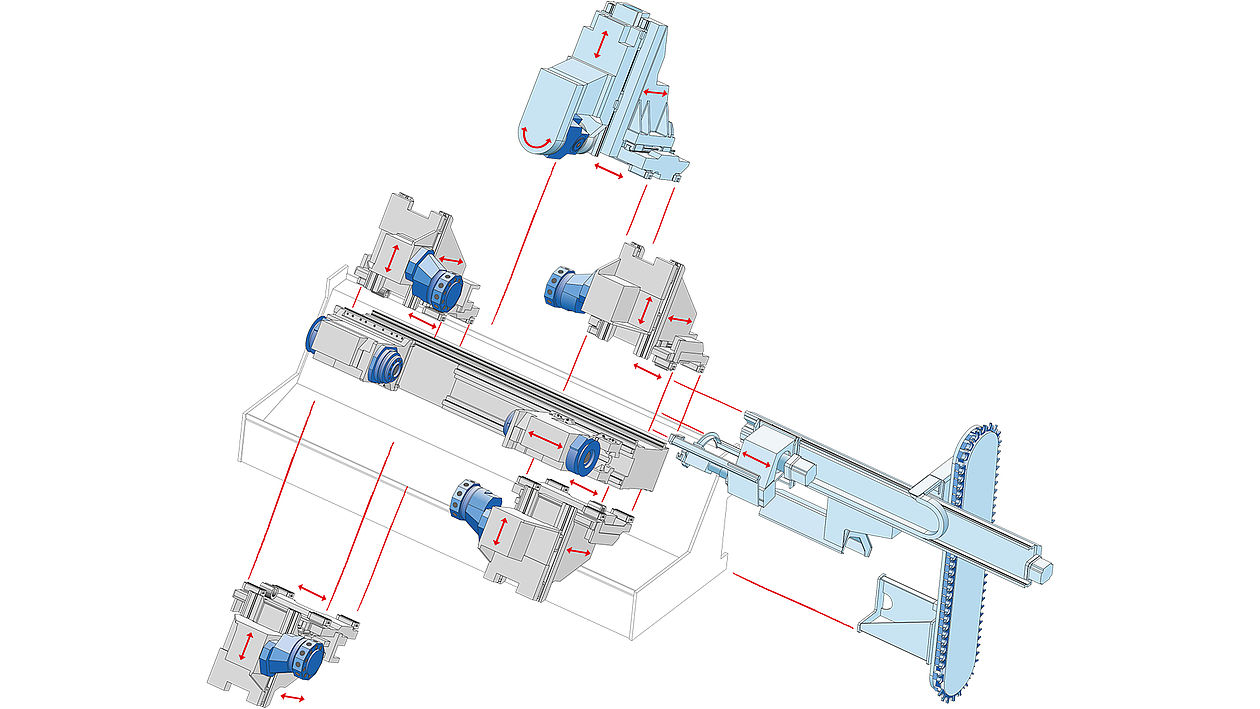 Шестерни на обоих концах наших инструментальных держателей (патент TRAUB) позволяет использовать режущий инструмент на главном шпинделе и противошпинделе. В сочетании с высокоточным позиционированием инструментального держателя это значительно снижает время переналадки. Таким образом, выравнивание инструмента не требуется.