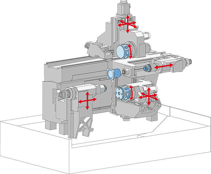 С дополнительным передним аппаратом - эффективное и более экономичное производство с использованием до четырех инструментов одновременно.